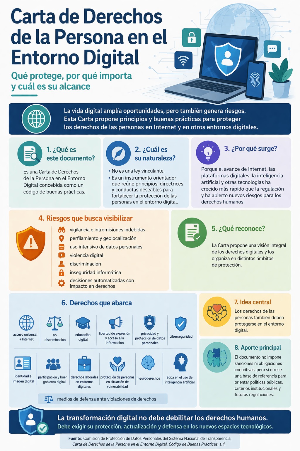 Documento de referencia sobre principios y derechos vinculados al entorno digital, con relevancia para el uso responsable de tecnologías emergentes.